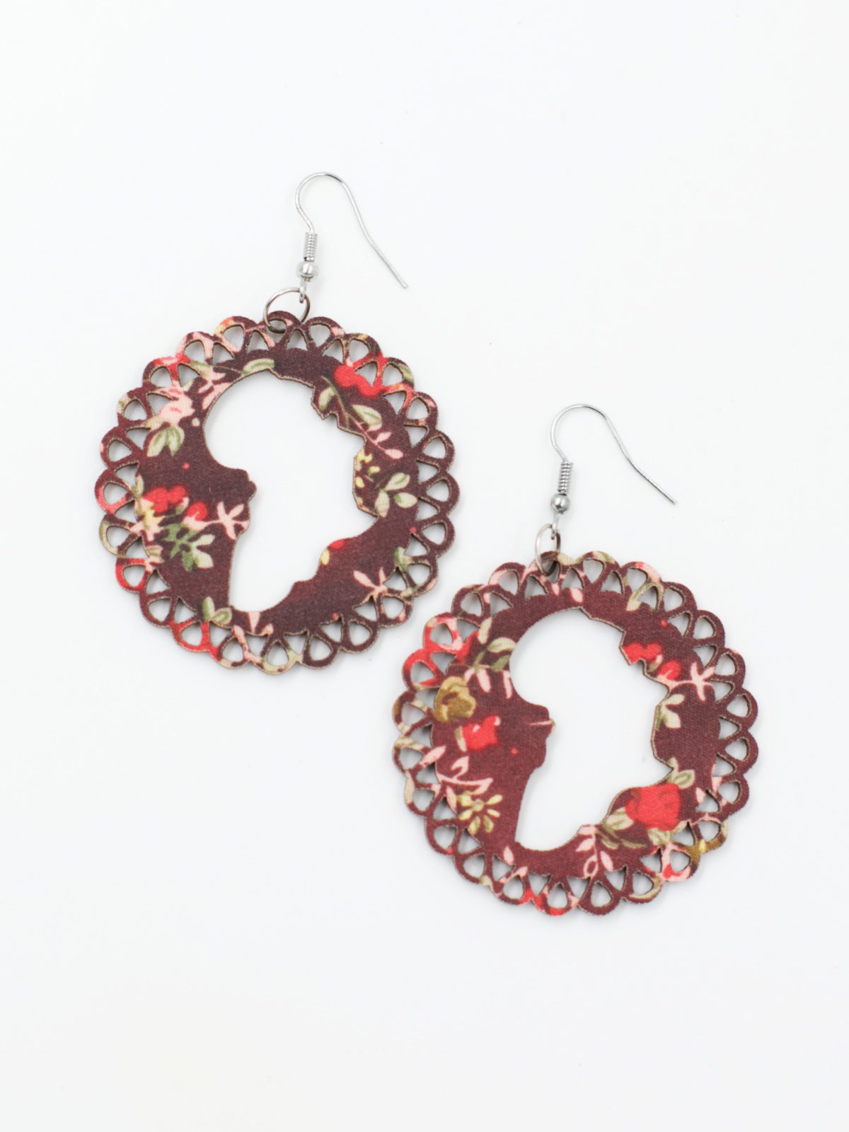 Drewno z którego zostały wykonane kolczyki jest lekkie i przyjemne w noszeniu. Głównym elementem tych kolczyków jest kształt Afryki – dodaje im unikalnego wyglądu. Kolczyki wyposażone są w zapięcie typu haczyk.