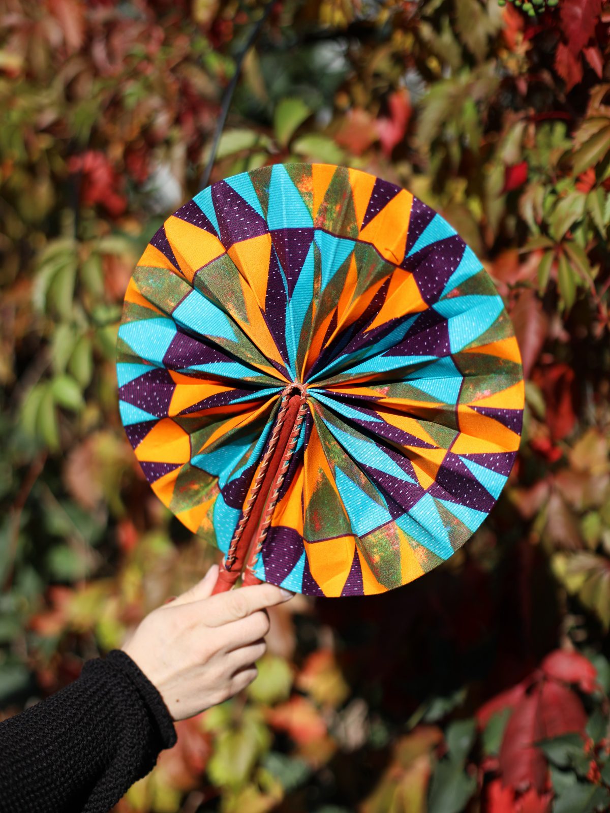 Nasz kolorowy składany wachlarz to nie tylko praktyczny sposób na ochłodzenie się w gorące dni, ale także piękny element kulturowy, który wprowadza atmosferę egzotyki do Twojej przestrzeni. Wykonany ręcznie z wysokiej jakości materiałów. Wachlarz wyróżnia się nie tylko funkcjonalnością, ale także pięknym wzornictwem, które odzwierciedla bogactwo kultury afrykańskiej. Wymiary podane są po rozłożeniu wachlarza.