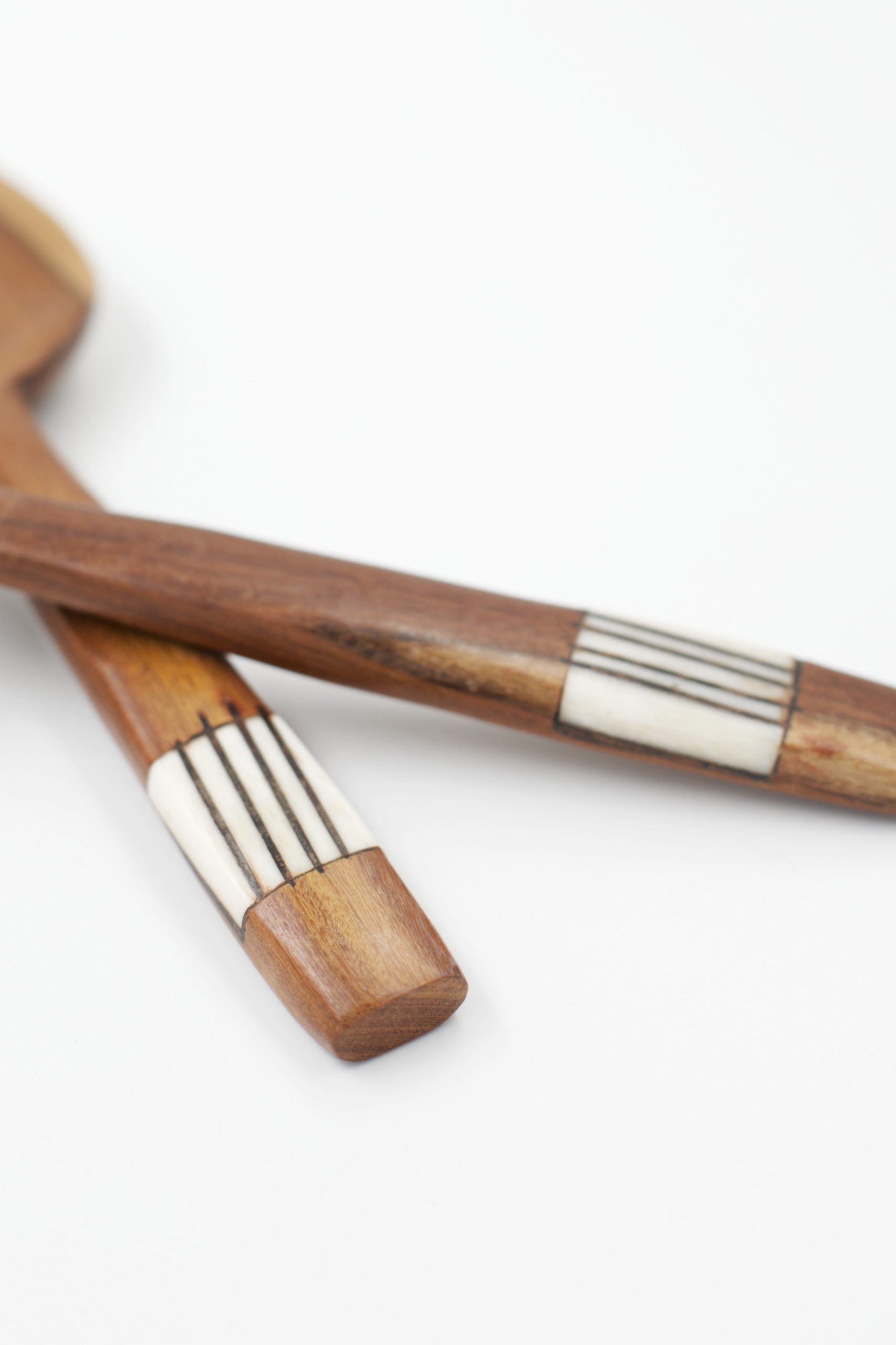 Te drewniane sztućce to wyjątkowy produkt, który łączy tradycję rzemiosła zambijskiego z praktycznym zastosowaniem w kuchni. Są wykonywane ręcznie przez lokalnych rzemieślników. Każdy egzemplarz jest unikatowy. Idealne do serwowania sałatek.