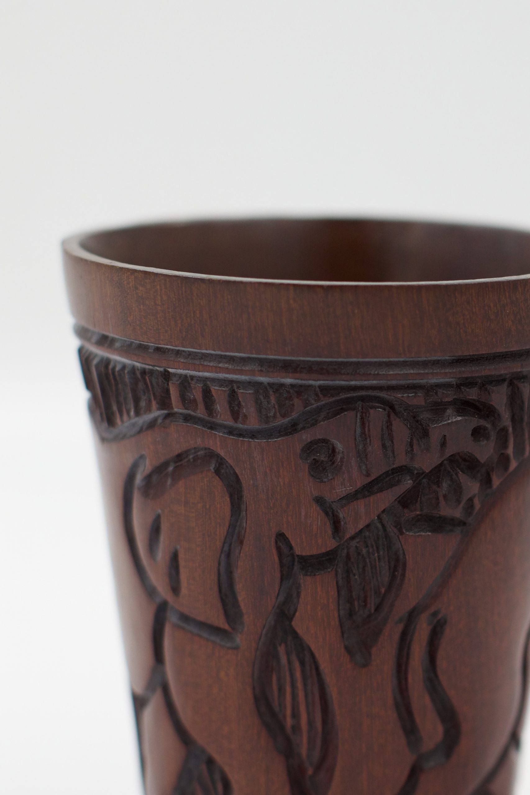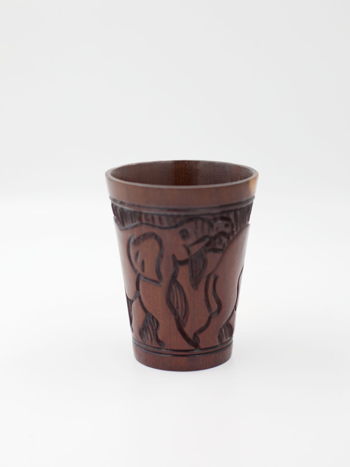 Ten drewniany kubek został wykonany z hebanu – drewna bardzo cenionego przez zambijskich rzemieślników. Idealny do przechowywania drobiazgów lub po prostu jako dekoracja. Posiada pięknie rzeźbiony motyw zwierzęcy.