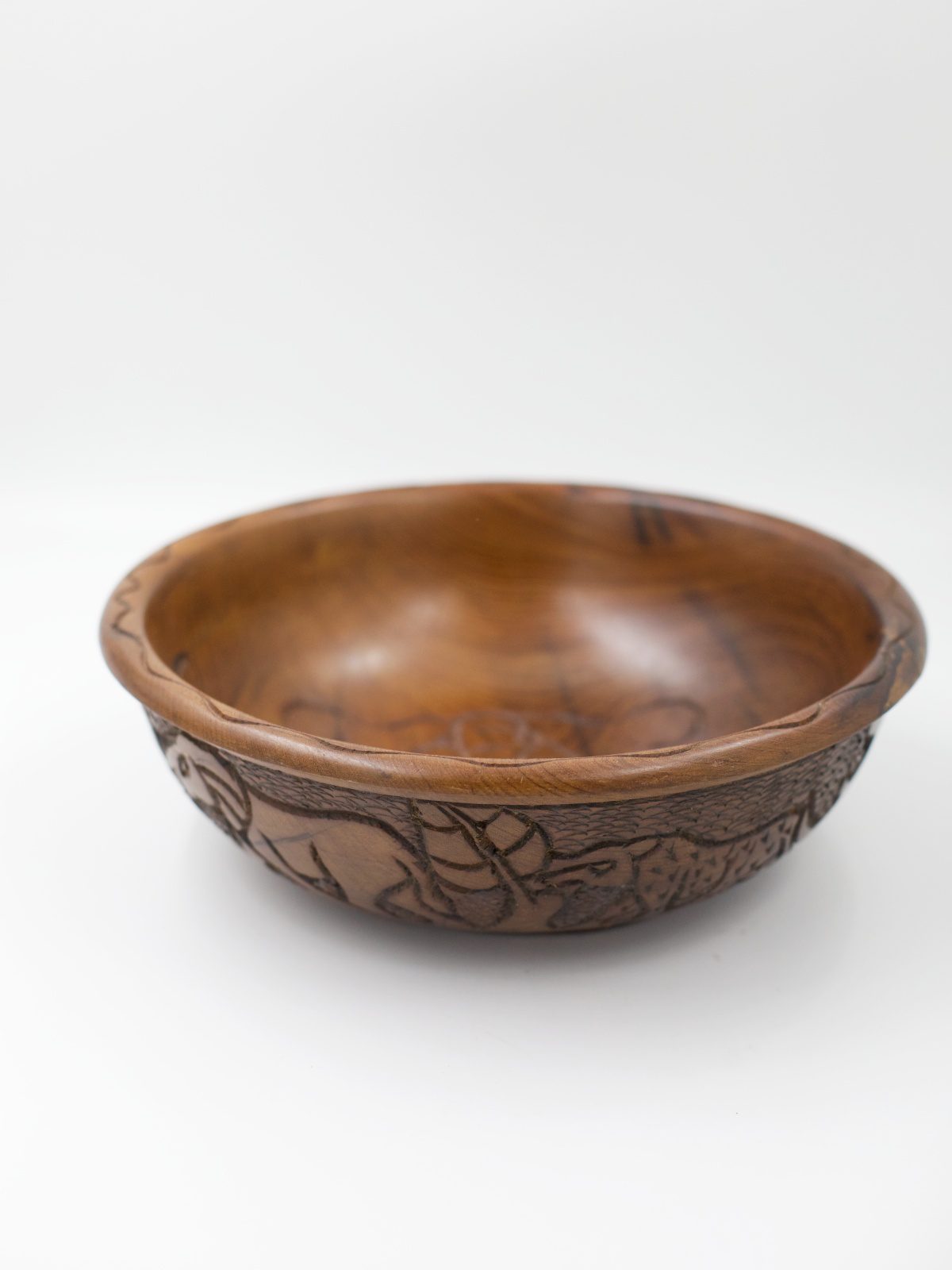 Duża drewniana rzeźbiona misa