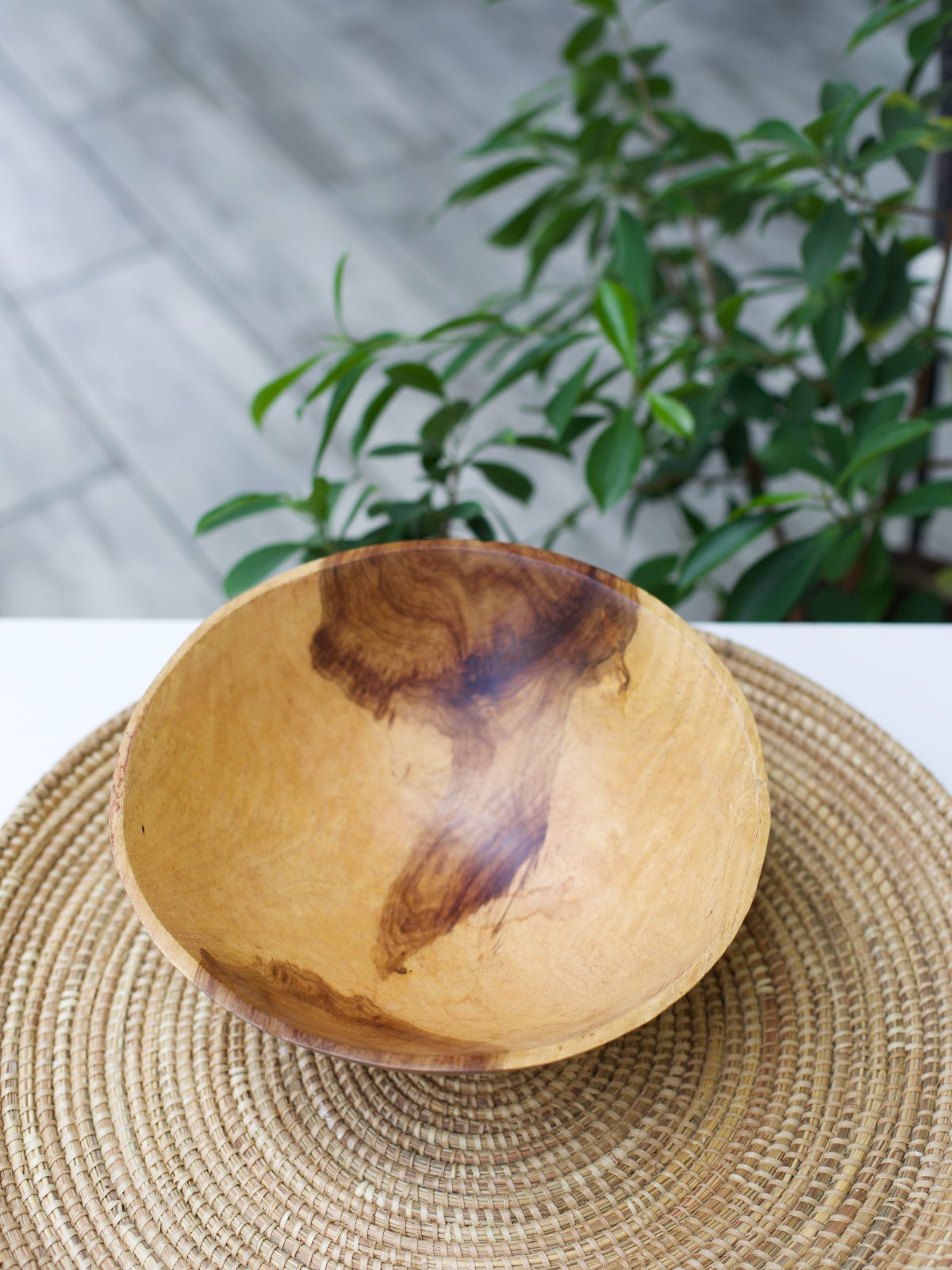 Ręcznie wykonana miska z naturalnego drewna, która łączy prostotę z niepowtarzalnym charakterem. Dzięki unikalnym naturalnym wzorom i delikatnym odcieniom, stanie się piękną ozdobą każdego wnętrza. Wykonana z najwyższej jakości drewna. Jest idealna do serwowania owoców, sałatek czy przekąsek, ale również świetnie sprawdzi się jako dekoracyjny element wnętrza.