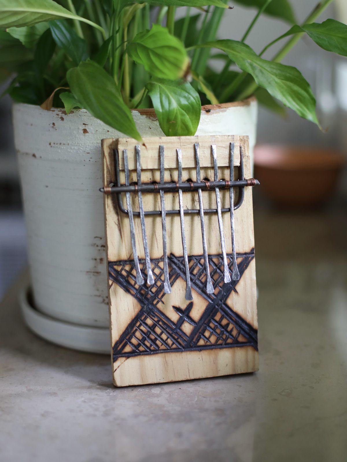 Kalimba to tradycyjny instrument afrykański, znany również jako „thumb piano”, który pochodzi z regionów Afryki Subsaharyjskiej. Nasza kalimba jest ręcznie wykonana z wysokiej jakości drewna, co nadaje jej wyjątkowy, naturalny wygląd. Wersja rękodzielnicza, przeznaczona do dekoracji.
