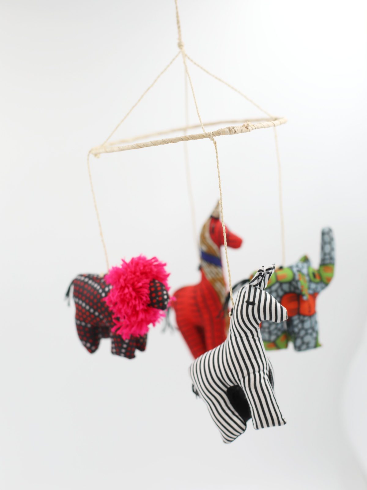 Afrykańskie zwierzątka zostały uszyte ręcznie. Do karuzeli nie ma w zestawie pałąku. Idealne na prezent dla przyszłej mamy.