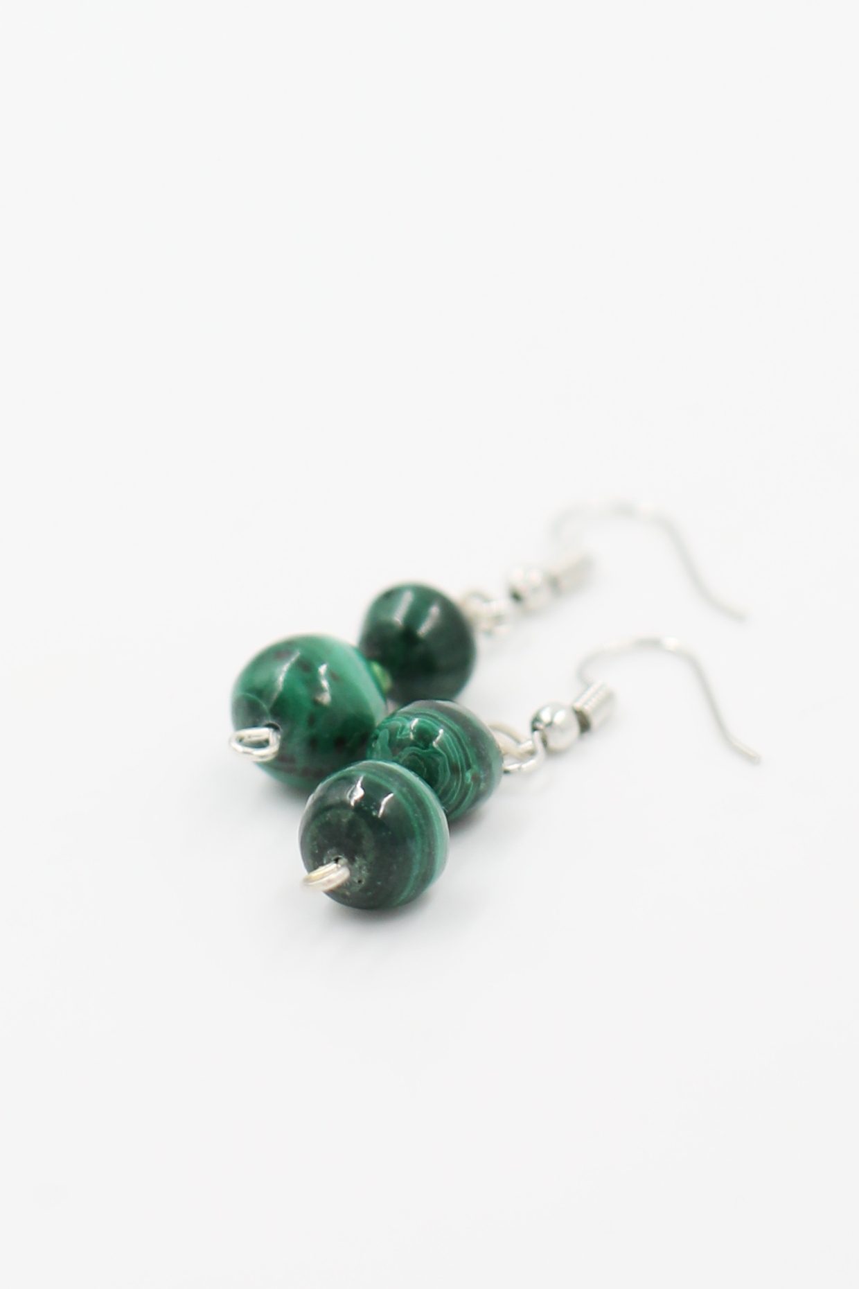 Kolczyki wykonane z malachitu – bardzo cennego kamienia z którego rękodzielnicy uwielbiają tworzyć biżuterię czy małe figurki. Eleganckie i w modnym kolorze będą idealnie pasować do wieczorowej stylizacji.