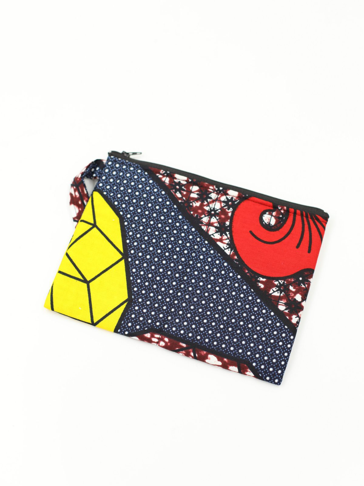 Unikalna, batikowa kosmetyczka w oryginalnym połączeniu kolorystycznym. Kosmetyczka została ręcznie uszyta w Senegalu przez uczennicę szkoły zawodowej Foyer Maria Goretti. Kosmetyczka jest bardzo wytrzymała, posiada wyściółkę oraz zamek.