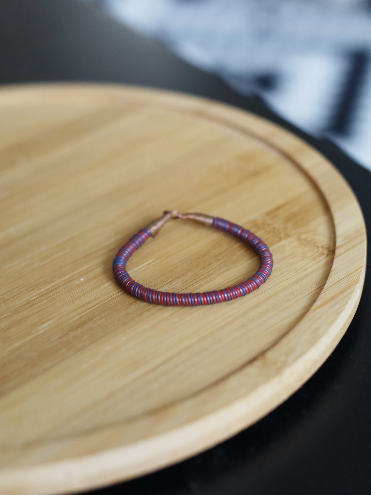 Ta oryginalna bransoletka łączy industrialny charakter metalu z nietuzinkowym wyglądem plecionych kabelków, tworząc stylowy dodatek na każdą okazję.  Idealna dla osób, które cenią nowoczesny design z nutą surowego charakteru. Doskonale sprawdzi się zarówno w codziennych stylizacjach, jak i jako mocny akcent do bardziej eleganckich zestawień, dodając im wyrazistości i indywidualnego stylu. Jest sztywna. Zapięta ma 5 cm średnicy. Rozpięta – 19 cm długości.