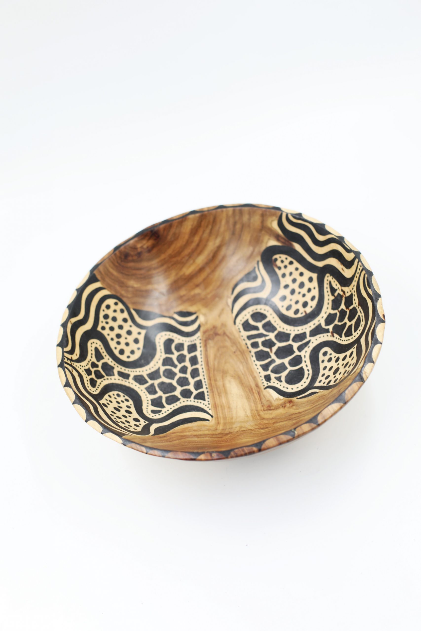 Prawdziwy bestseller. Nasze duże drewniane misy, ręcznie wykonane przez zambijskich rzemieślników, to absolutne unikaty – mamy tylko jedną sztukę każdego projektu. Misy doskonale sprawdzają się w jadalni jak i w kuchni, eksponując owoce, lub w sypialni i salonie, jako akcesorium dekoracyjne przechowujące różne drobiazgi.