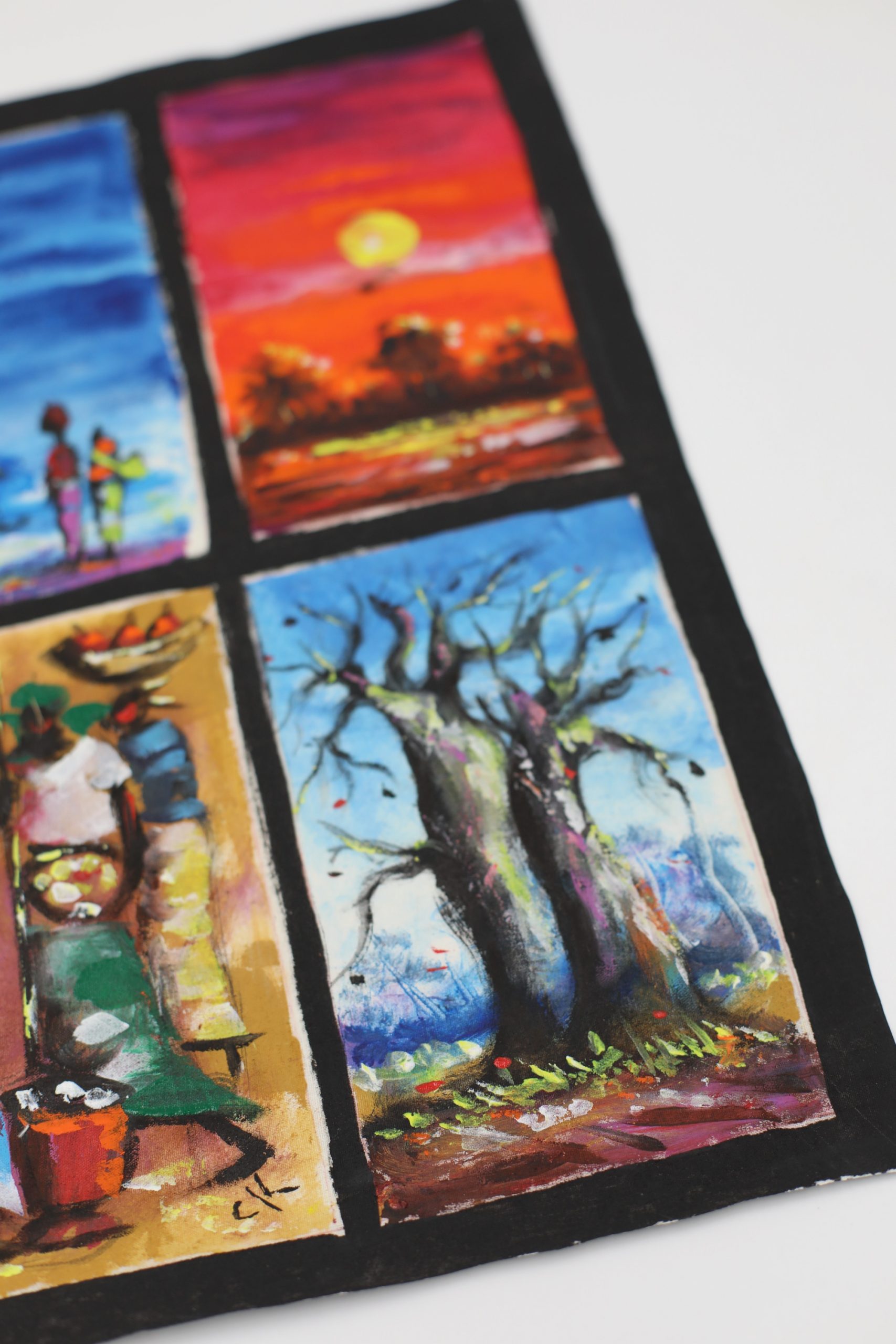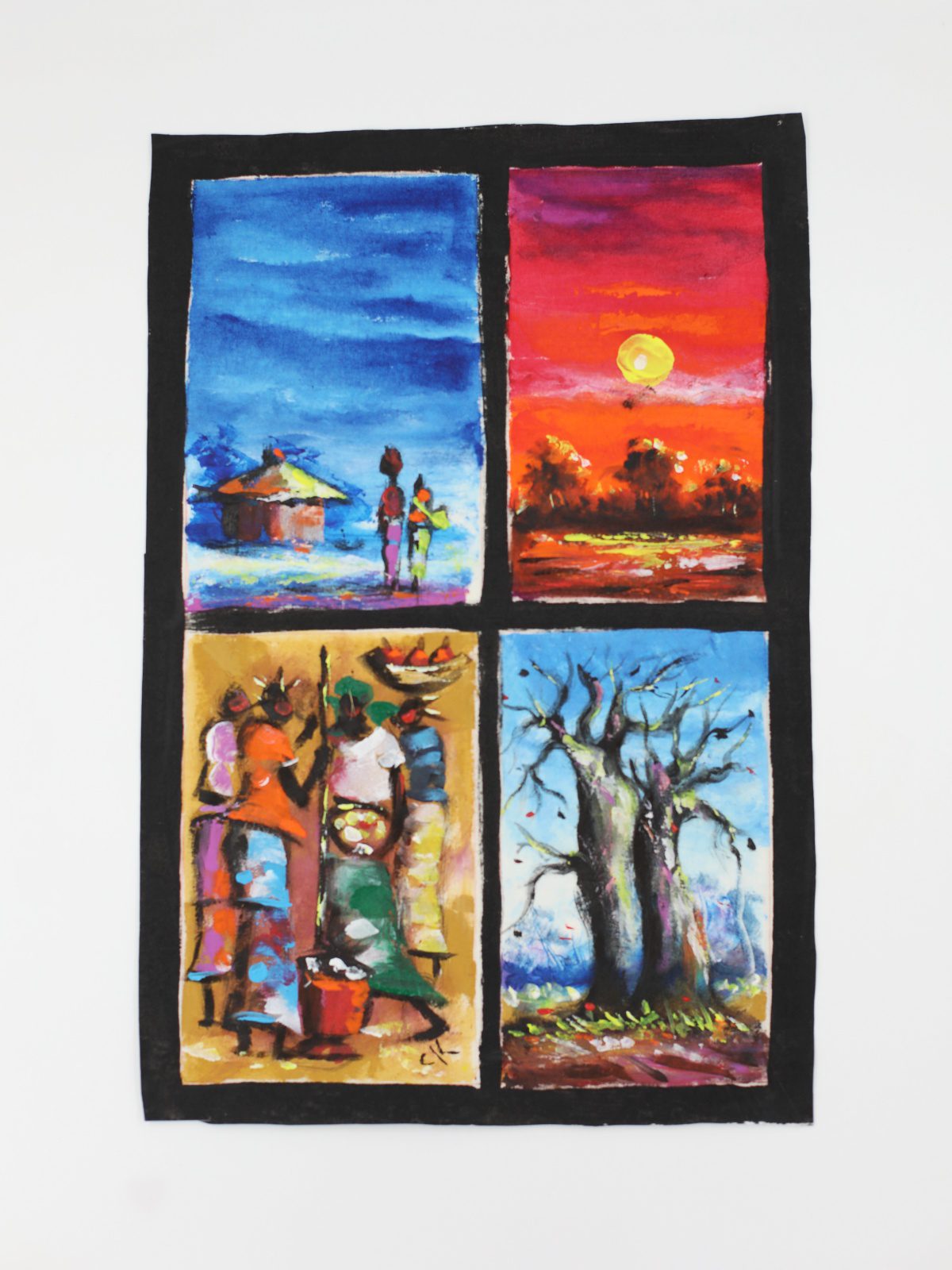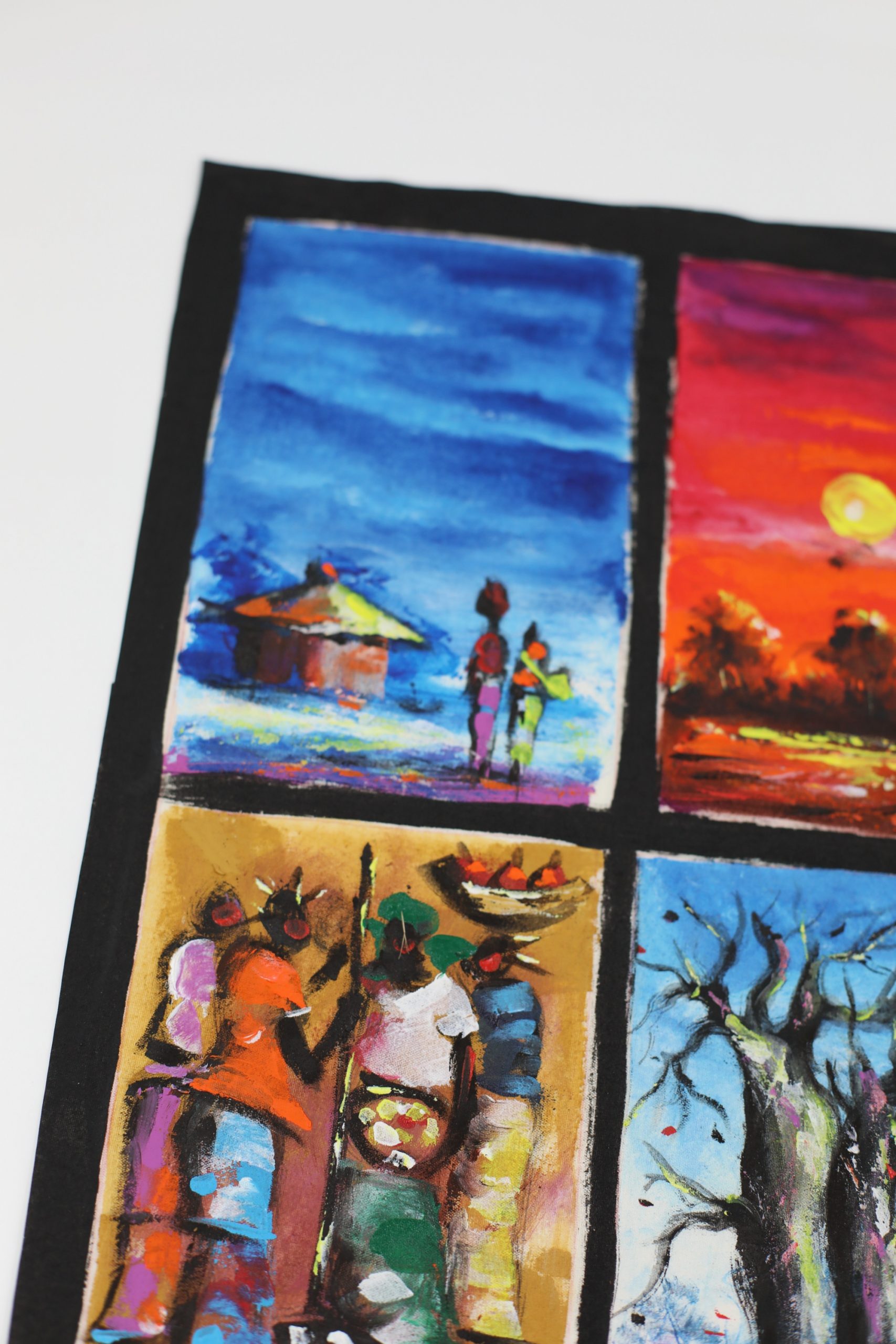 Obraz podzielony jest na cztery różne afrykańskie scenki.