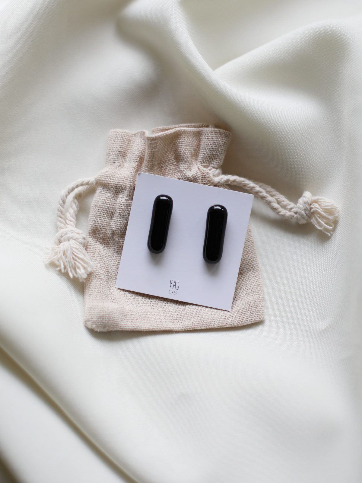 Te piękne, szklane kolczyki zostały wykonane ręcznie przez ukraińską absolwentkę szkoły artystycznej. Kolor czarny zdecydowanie nada elegancji każdej stylizacji.