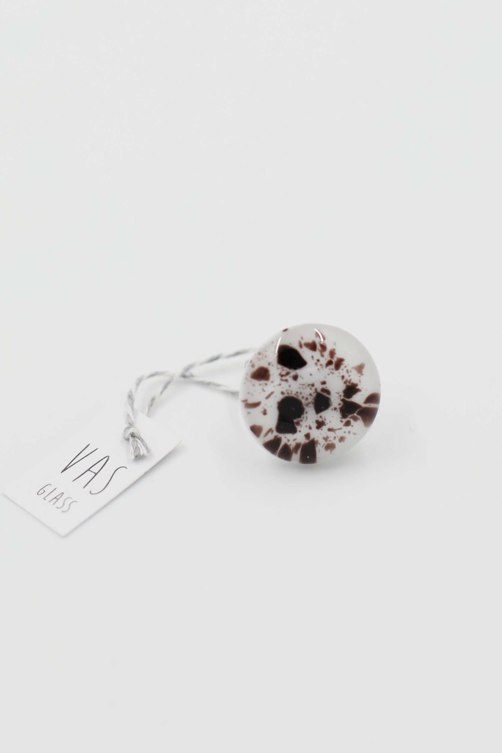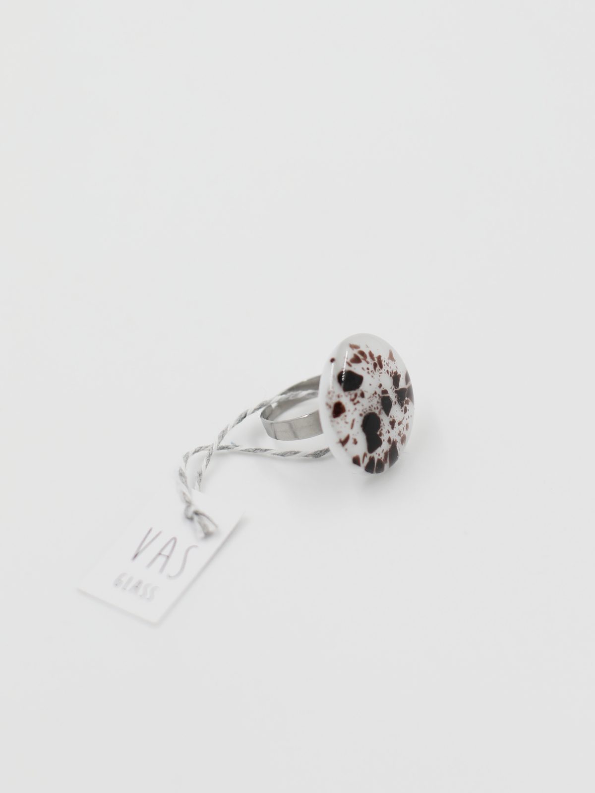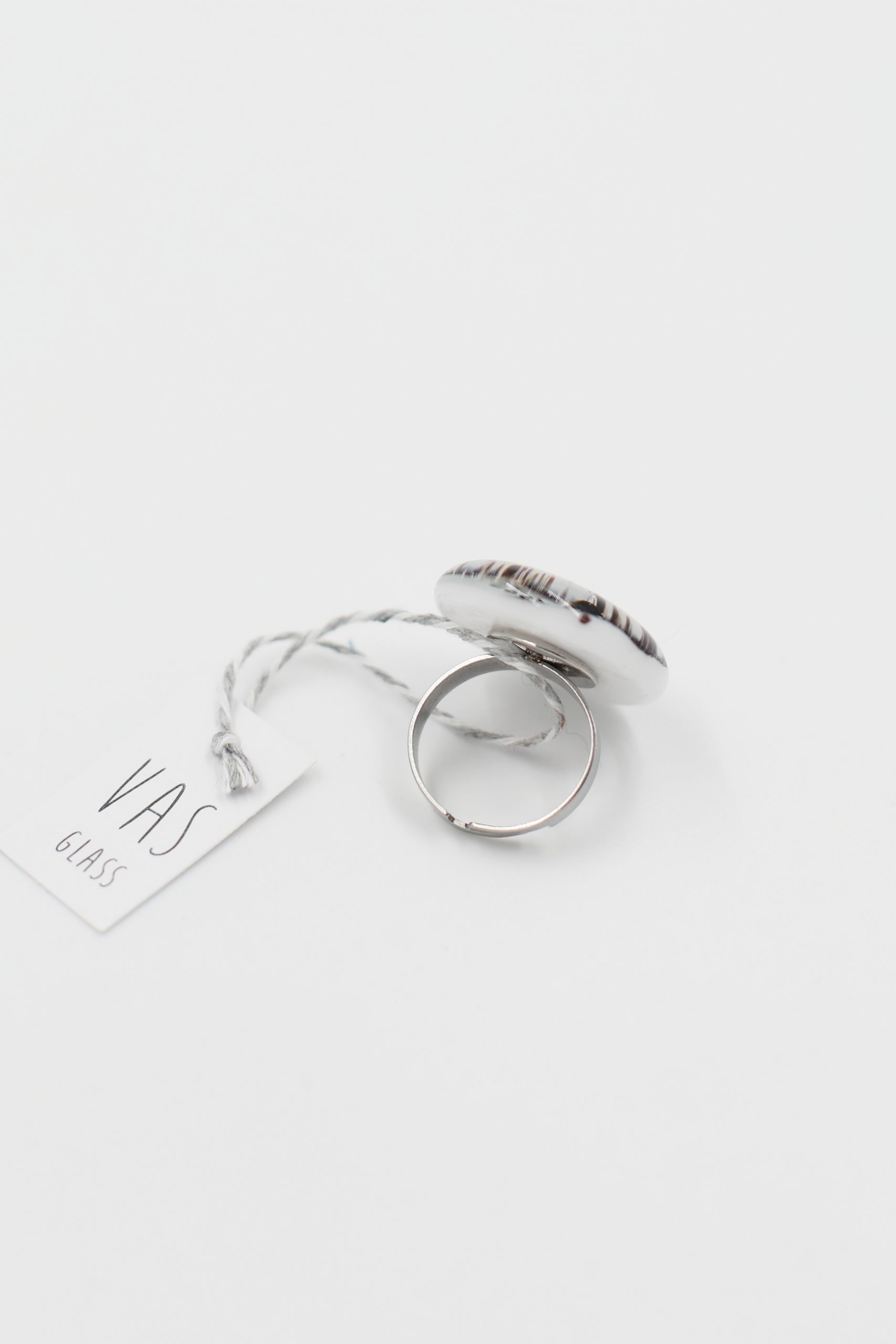 Pierścionek ze szkła i stali został ręcznie wykonany przez lwowską artystkę. Wielkość obrączki można regulować.