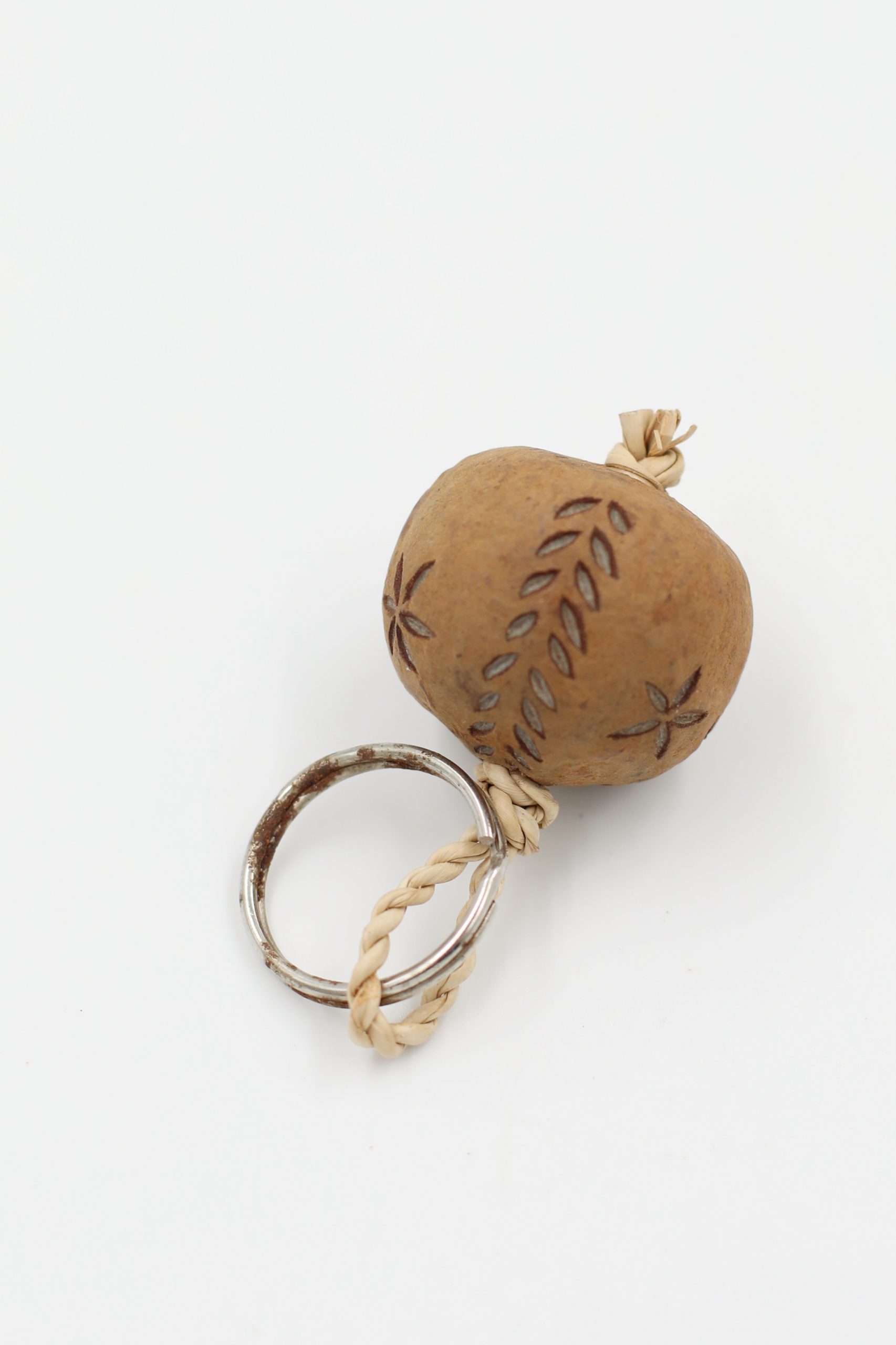 Breloczek wykonany ręcznie, najprawdopodobniej z łupiny owoca. Poręczny, solidny. Każdy posiada swój unikatowy wzór wysyłany losowo.