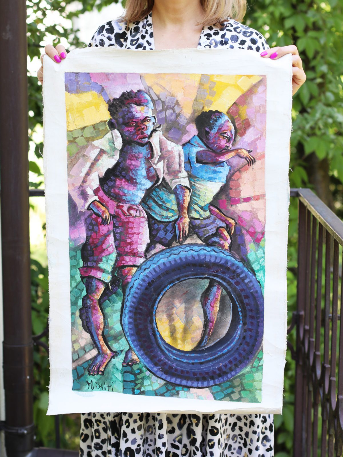 Przechodząc po zambijskim targowisku, nie mogliśmy oprzeć się urokowi stoisk, na których swoje prace prezentowali prawdziwi artyści. Każdy z nich z niezwykłą pasją tworzy niesamowite obrazy, które przyciągają uwagę swoim niepowtarzalnym stylem. Te dzieła sztuki, pełne żywych kolorów i dynamicznych form, oddają ducha afrykańskiej kultury. Każdy obraz jest jedyny w swoim rodzaju i stanowi wyjątkową kompozycję, która łączy tradycyjne afrykańskie motywy z nowoczesnym podejściem do sztuki. Obraz możecie oprawić w dekoracyjnej ramie lub naciągnąć na blejtram.