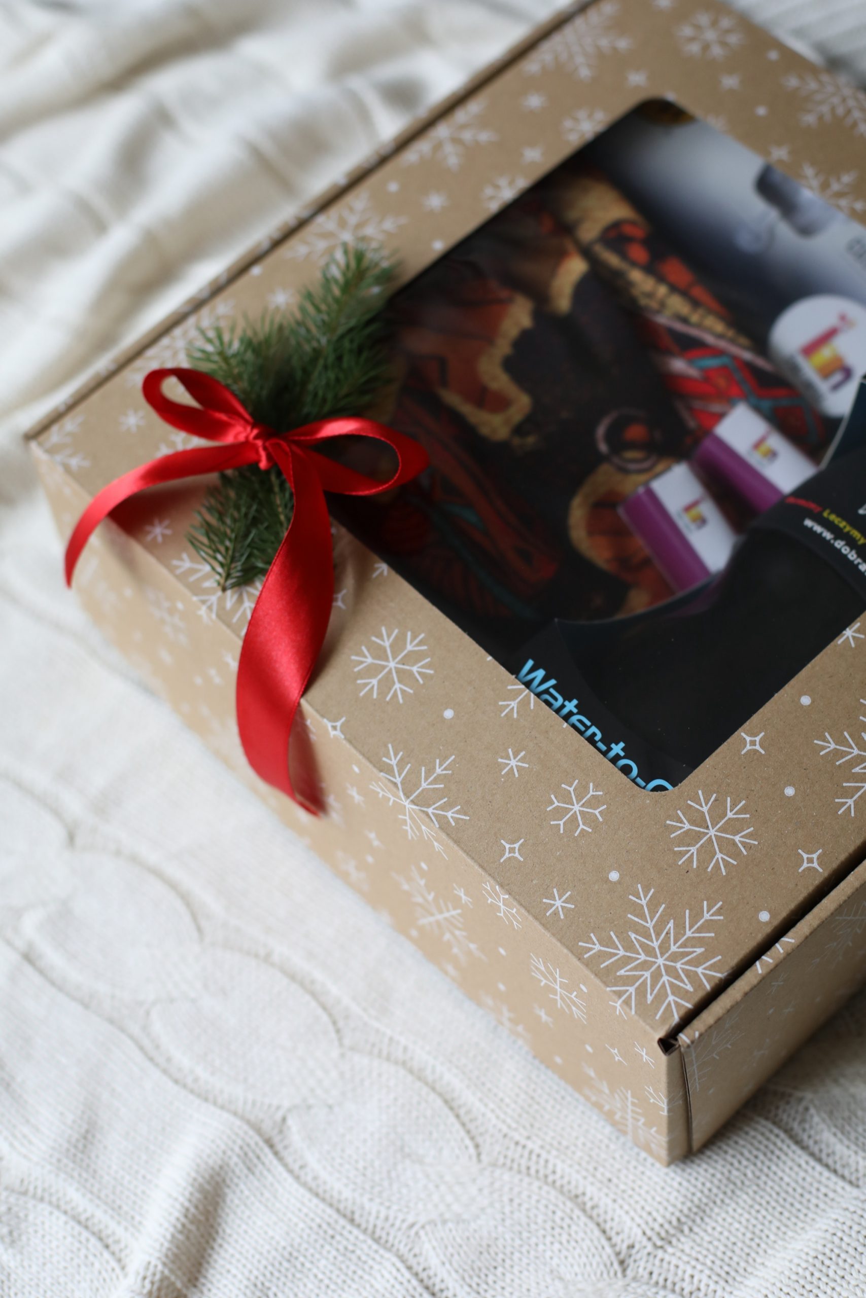 Zestaw prezentowy pakujemy w eleganckie kartonowe pudełko z ekologicznym wypełnieniem. Istnieje możliwość dołożenia do boxu kartki ze spersonalizowanymi życzeniami – kupisz ją TU. Paczki wysyłamy kurierem na wskazany przy zamówieniu adres lub do paczkomatu.